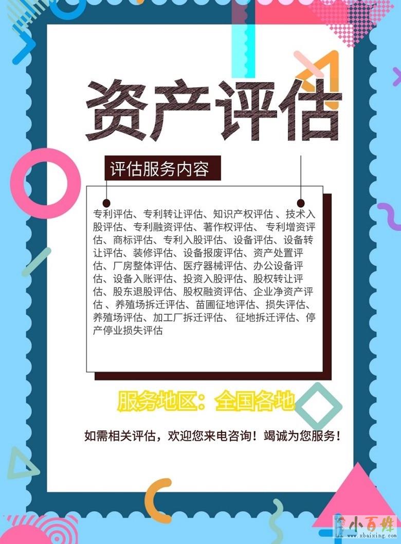 【服务范围】:净资产评估,无形资产评估,各类设备评估,拆迁房产土地评估,车辆评估,技术评估,知识产权评估, 版权评估,侵权评估,企业价值评估,股权评估, 各类工程项目评估,农林牧渔业评估等各类评估,欢...